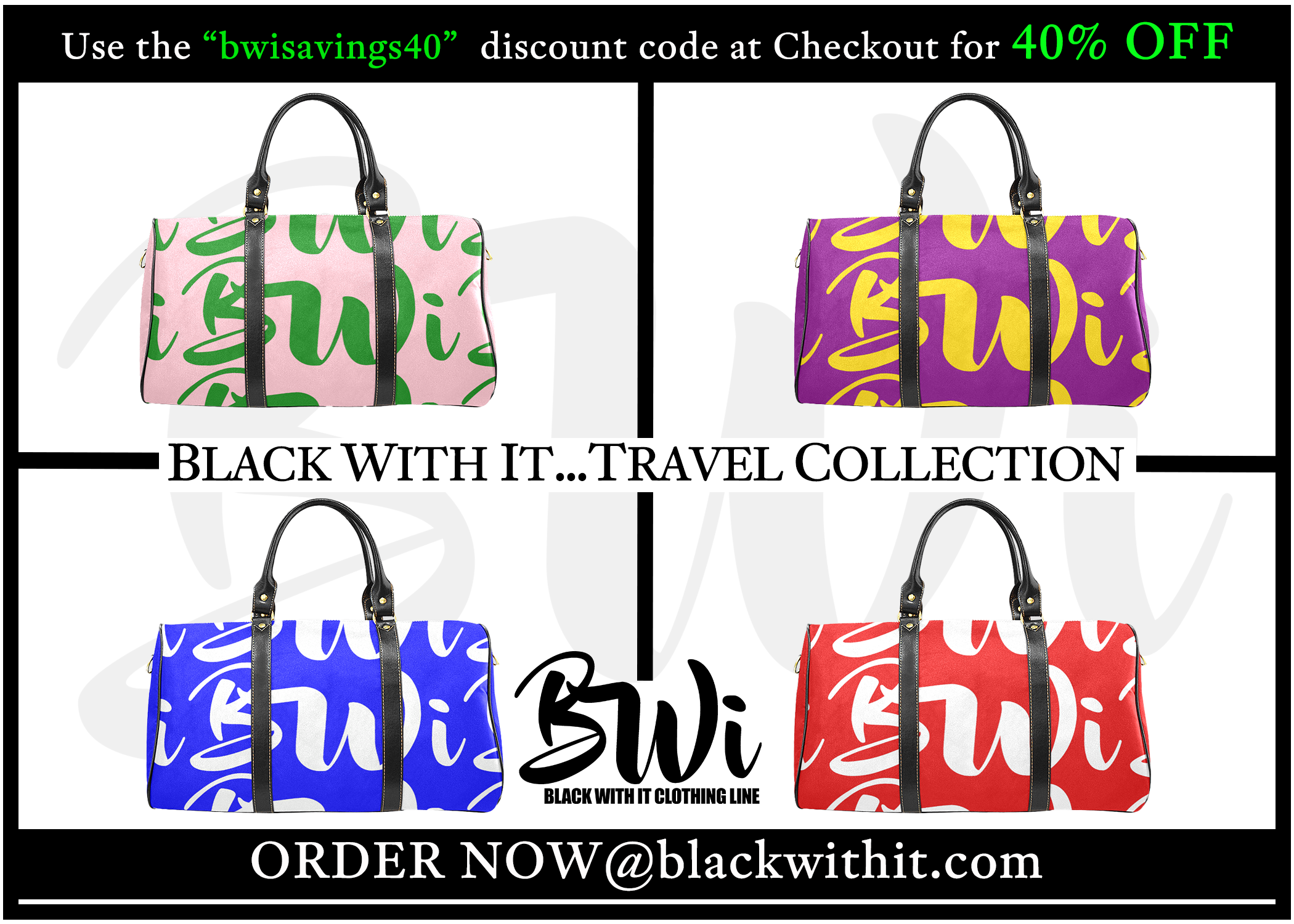 SHOP NOW AND SAVE 40% OFF (Use Coupon Code at Checkout: "BWISAVINGS40")